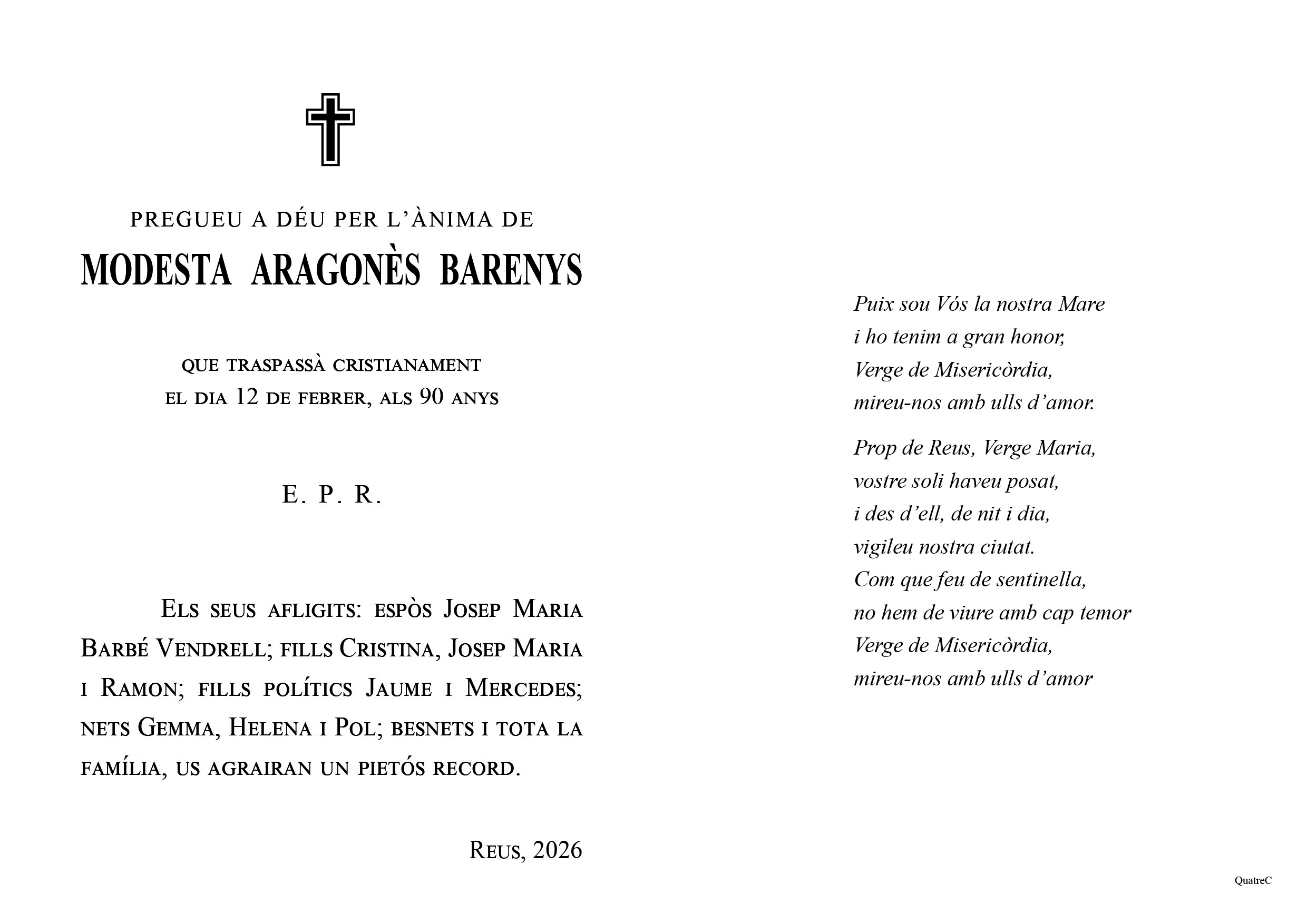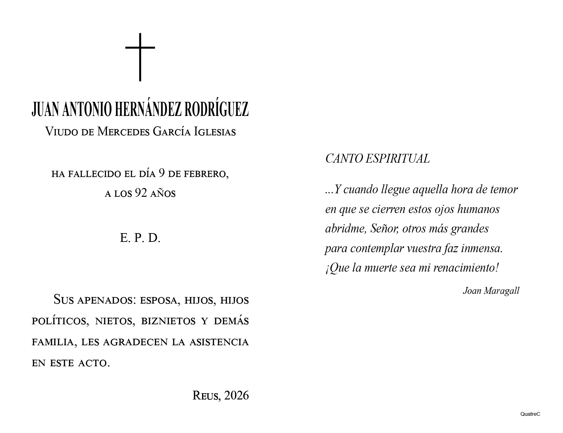 En aquest enllaç podeu accedir a l'històric de les darreres defuncions que han estat ateses al nostre Tanatori Municipal de Reus.