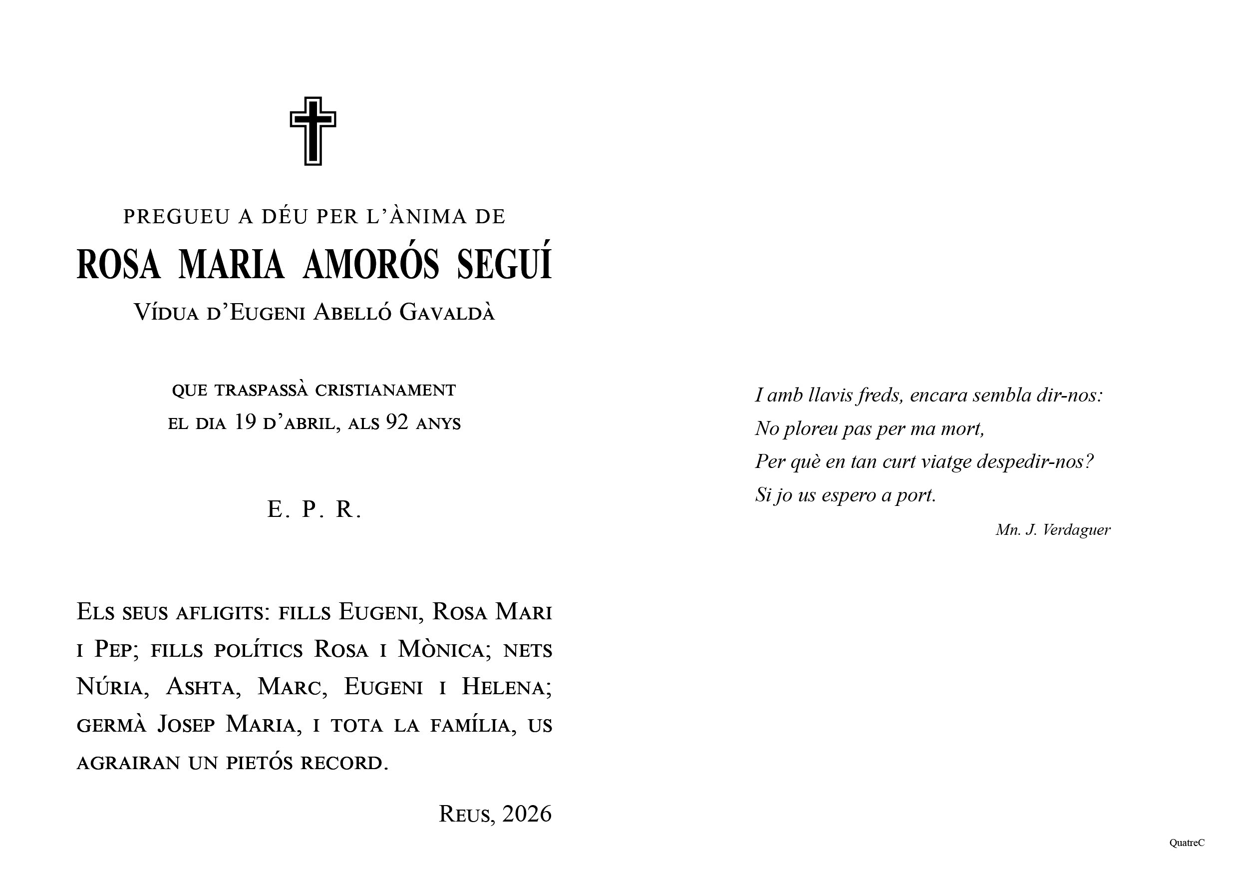 Recordeu que en aquest apartat, podeu trobar la informació concreta de les diferents sales de vetlla, així com les diferents possibilitats que teniu a l'abast per participar el en condol i comiat dels nostres difunts. Sempre sota les indicacions i desitjos de les famílies, podeu enviar un condol des d'aquesta pàgina o fins i tot participar en l'homenatge en vida de qui ens ha deixat.