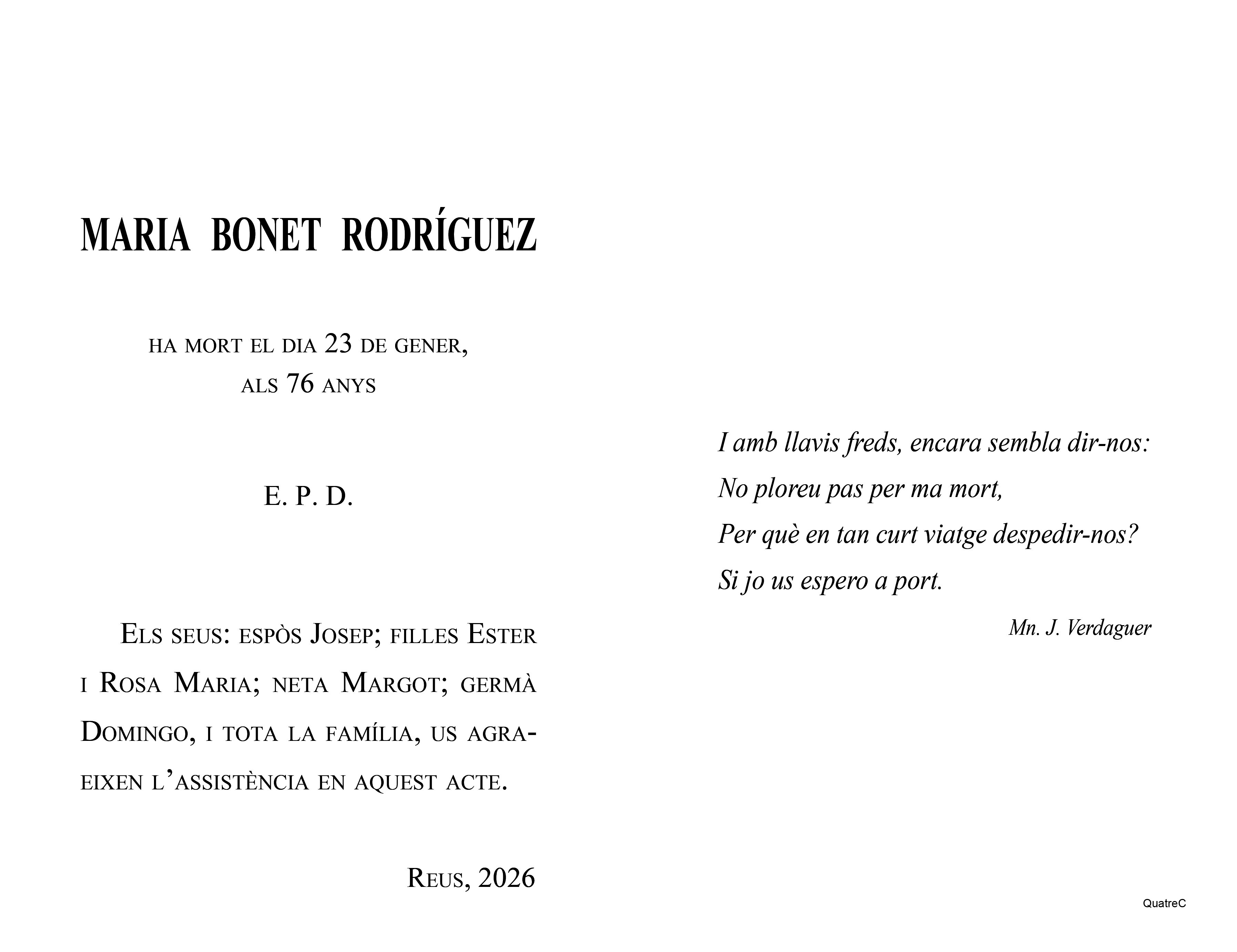 Recordeu que en aquest apartat, podeu trobar la informació concreta de les diferents sales de vetlla, així com les diferents possibilitats que teniu a l'abast per participar el en condol i comiat dels nostres difunts. Sempre sota les indicacions i desitjos de les famílies, podeu enviar un condol des d'aquesta pàgina o fins i tot participar en l'homenatge en vida de qui ens ha deixat.