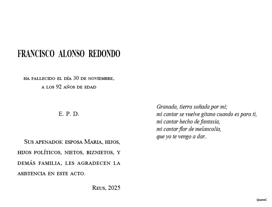 Recordeu que en aquest apartat, podeu trobar la informació concreta dels serveis amb sala de vetlla, així com les diferents possibilitats que teniu a l'abast per participar en el condol i comiat dels nostres difunts. Sempre sota les indicacions i desitjos de les famílies, podeu enviar un condol des d'aquesta pàgina o fins i tot participar en l'homenatge en vida de qui ens ha deixat.