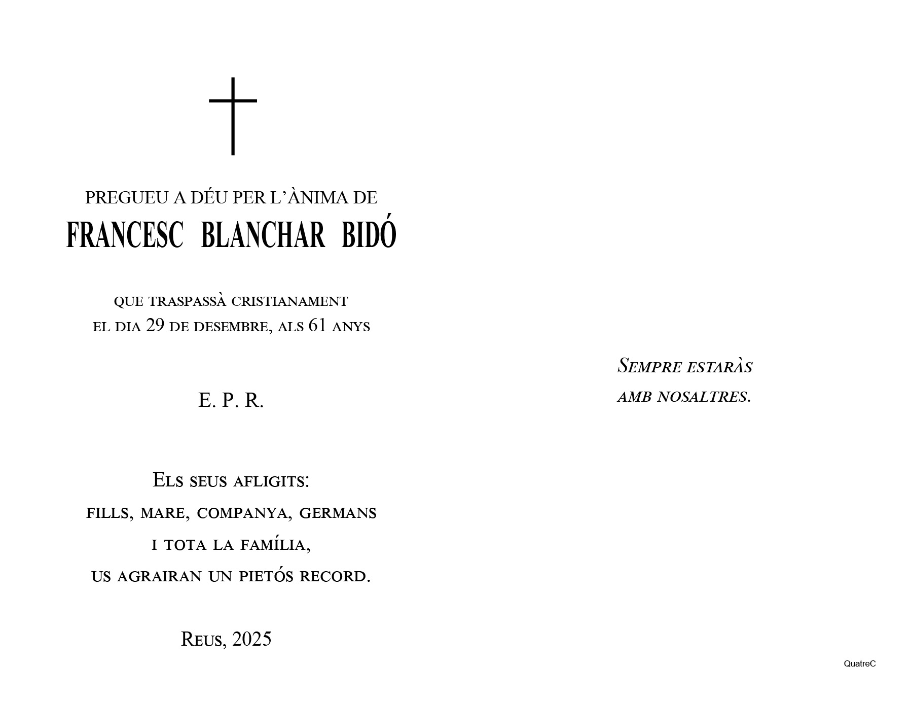 Recordeu que en aquest apartat, podeu trobar la informació concreta dels serveis amb sala de vetlla, així com les diferents possibilitats que teniu a l'abast per participar en el condol i comiat dels nostres difunts. Sempre sota les indicacions i desitjos de les famílies, podeu enviar un condol des d'aquesta pàgina o fins i tot participar en l'homenatge en vida de qui ens ha deixat.