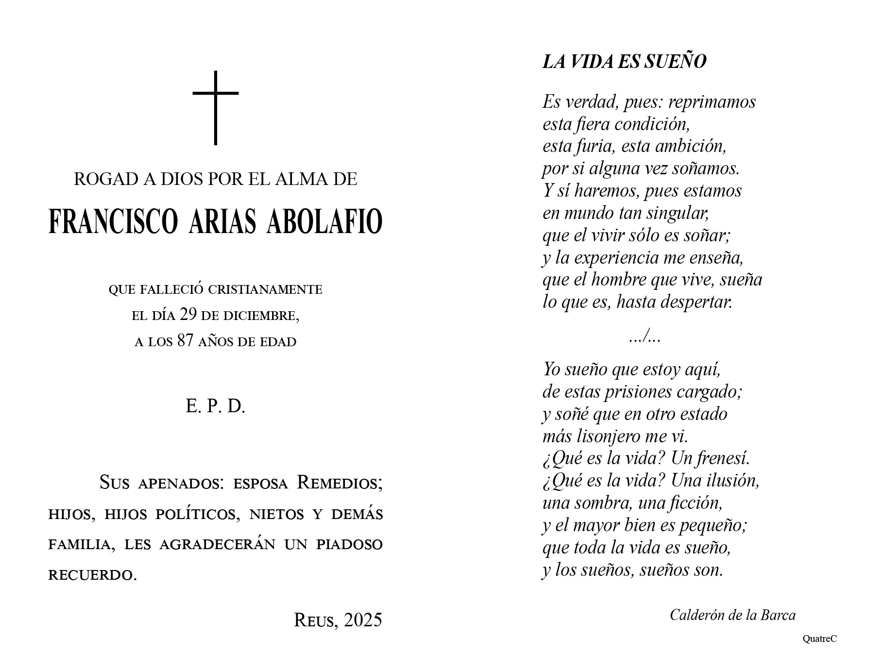 Recordeu que en aquest apartat, podeu trobar la informació concreta dels serveis amb sala de vetlla, així com les diferents possibilitats que teniu a l'abast per participar en el condol i comiat dels nostres difunts. Sempre sota les indicacions i desitjos de les famílies, podeu enviar un condol des d'aquesta pàgina o fins i tot participar en l'homenatge en vida de qui ens ha deixat.