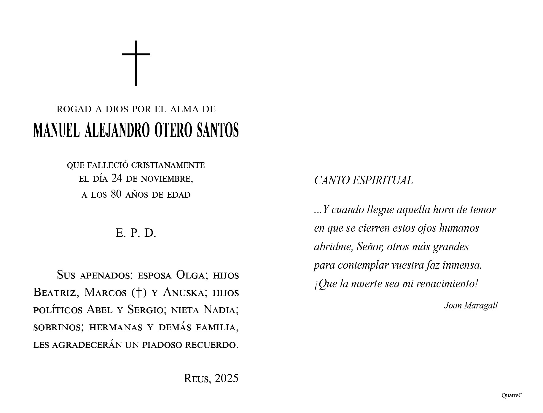 Recordeu que en aquest apartat, podeu trobar la informació concreta dels serveis amb sala de vetlla, així com les diferents possibilitats que teniu a l'abast per participar en el condol i comiat dels nostres difunts. Sempre sota les indicacions i desitjos de les famílies, podeu enviar un condol des d'aquesta pàgina o fins i tot participar en l'homenatge en vida de qui ens ha deixat.