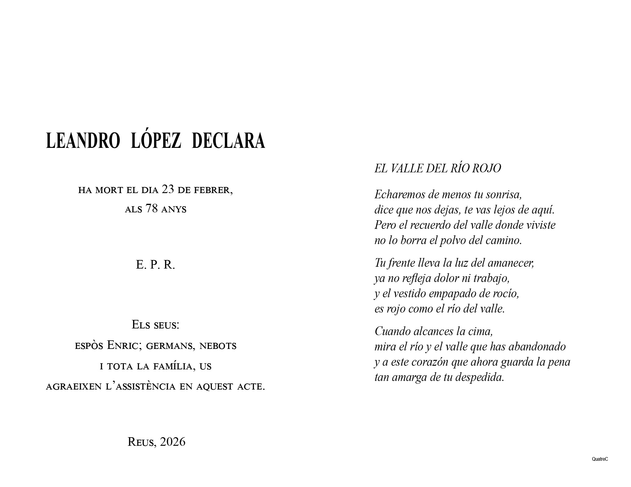 Recordeu que en aquest apartat, podeu trobar la informació concreta dels serveis amb sala de vetlla, així com les diferents possibilitats que teniu a l'abast per participar en el condol i comiat dels nostres difunts. Sempre sota les indicacions i desitjos de les famílies, podeu enviar un condol des d'aquesta pàgina o fins i tot participar en l'homenatge en vida de qui ens ha deixat.