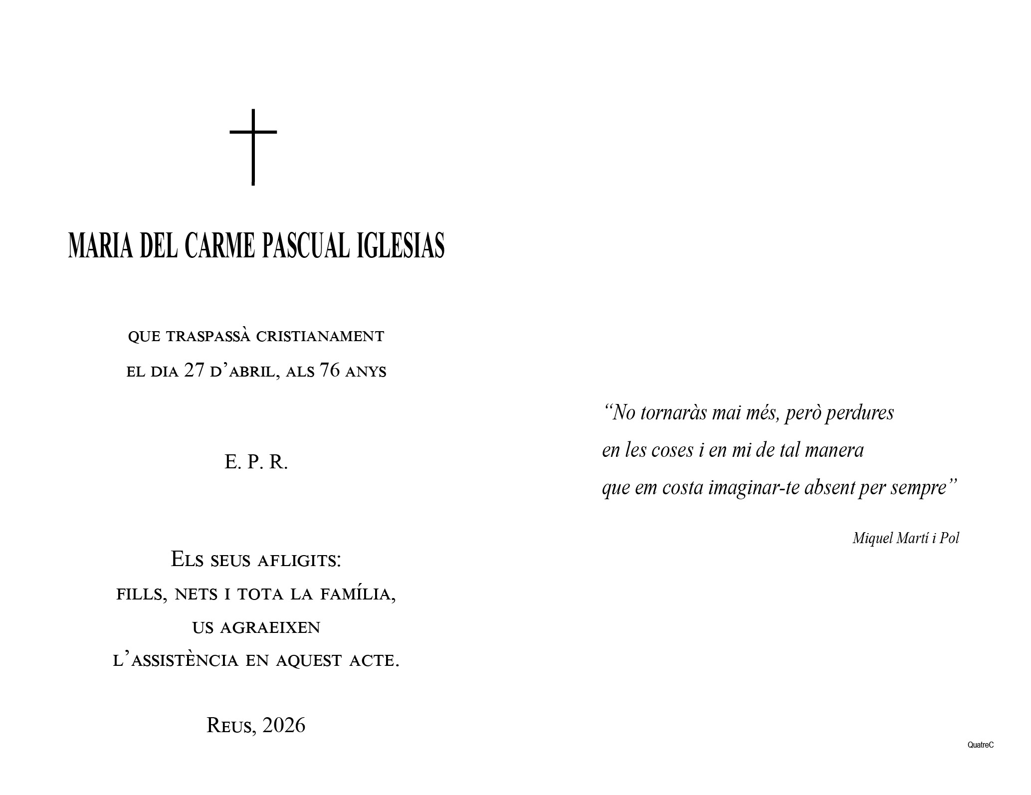 Recordeu que en aquest apartat, podeu trobar la informació concreta dels serveis amb sala de vetlla, així com les diferents possibilitats que teniu a l'abast per participar en el condol i comiat dels nostres difunts. Sempre sota les indicacions i desitjos de les famílies, podeu enviar un condol des d'aquesta pàgina o fins i tot participar en l'homenatge en vida de qui ens ha deixat.