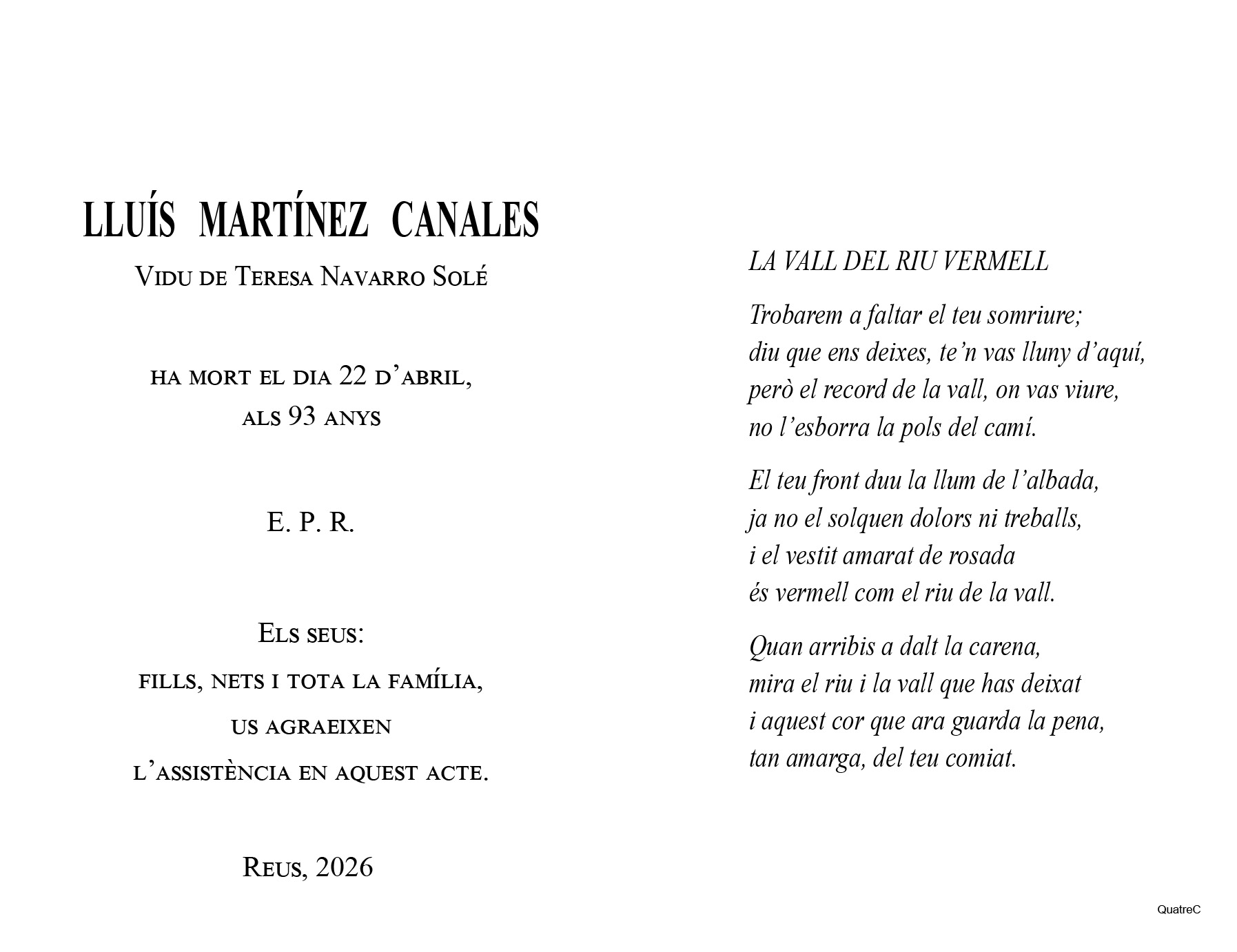 Recordeu que en aquest apartat, podeu trobar la informació concreta dels serveis amb sala de vetlla, així com les diferents possibilitats que teniu a l'abast per participar en el condol i comiat dels nostres difunts. Sempre sota les indicacions i desitjos de les famílies, podeu enviar un condol des d'aquesta pàgina o fins i tot participar en l'homenatge en vida de qui ens ha deixat.
