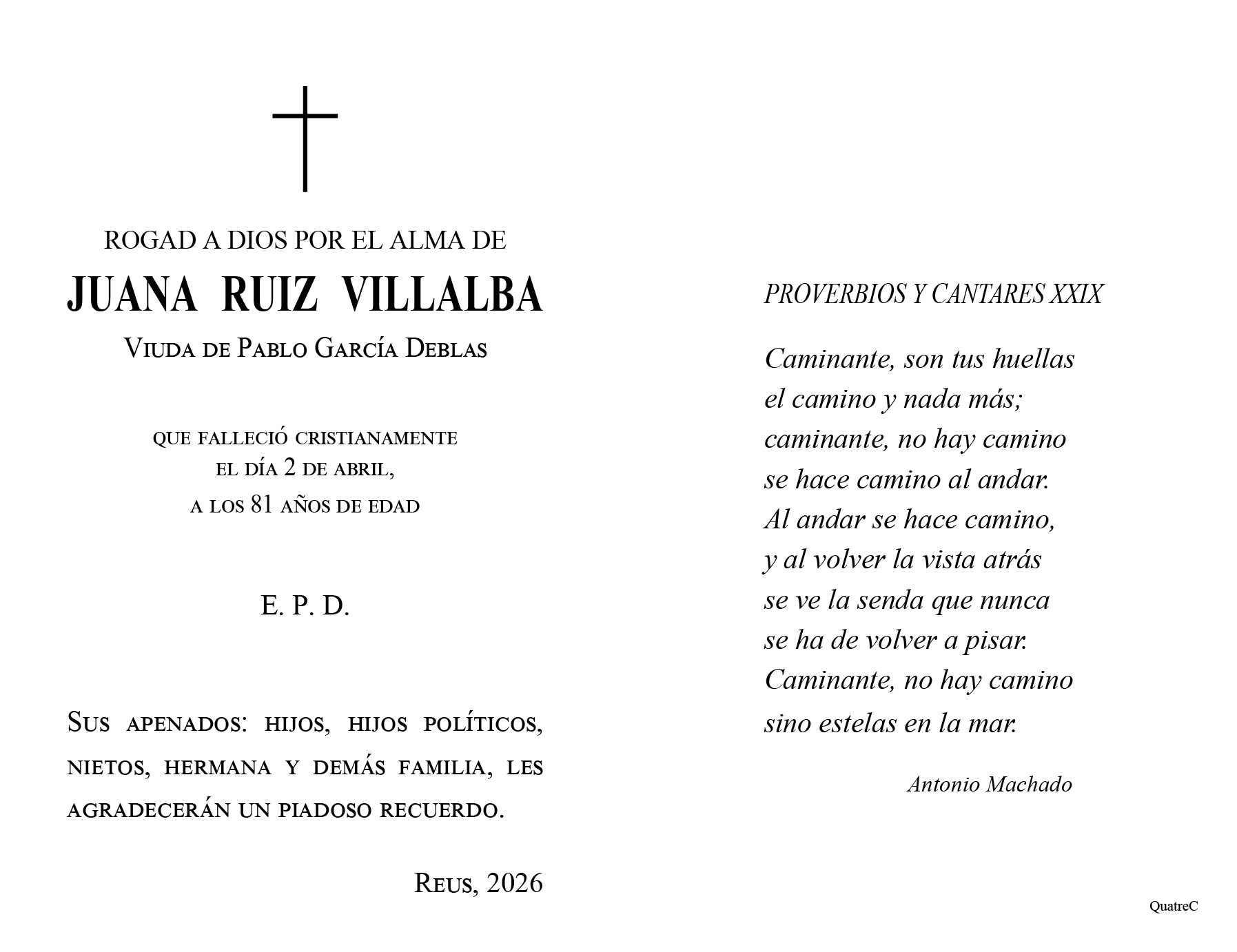 Recordeu que en aquest apartat, podeu trobar la informació concreta dels serveis amb sala de vetlla, així com les diferents possibilitats que teniu a l'abast per participar en el condol i comiat dels nostres difunts. Sempre sota les indicacions i desitjos de les famílies, podeu enviar un condol des d'aquesta pàgina o fins i tot participar en l'homenatge en vida de qui ens ha deixat.