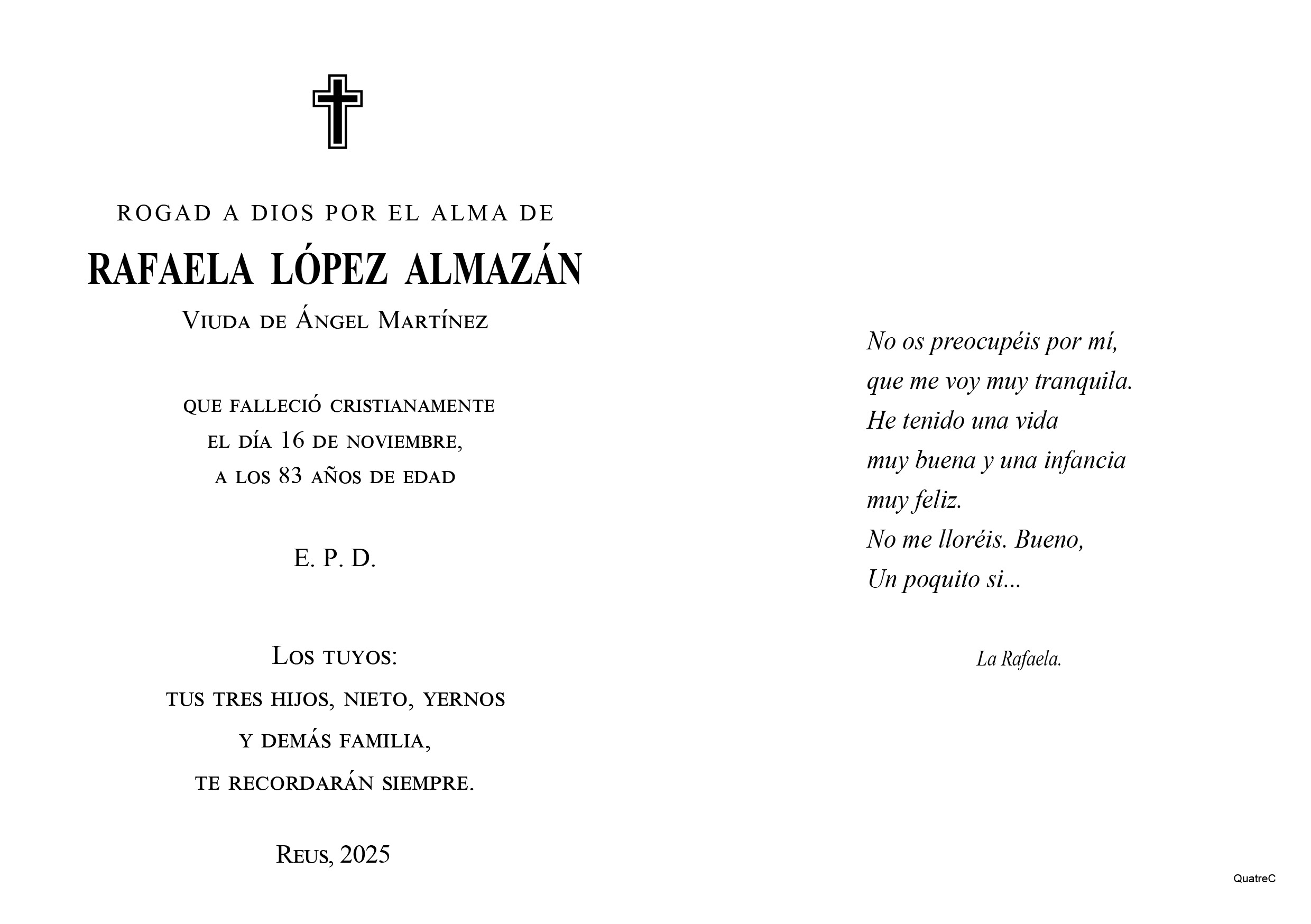 Recordeu que en aquest apartat, podeu trobar la informació concreta dels serveis amb sala de vetlla, així com les diferents possibilitats que teniu a l'abast per participar en el condol i comiat dels nostres difunts. Sempre sota les indicacions i desitjos de les famílies, podeu enviar un condol des d'aquesta pàgina o fins i tot participar en l'homenatge en vida de qui ens ha deixat.
